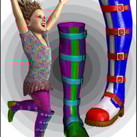 This set of fabulous Industrial/Goth boots for all your Genesis characters might be the most versatile clothing item in your runtime. As the promo images show, Dead Nation Boots can be dark or smart, fun or funky. They are well suited to Goth, industrial, sci fi, every day, fantasy, toon, manga and military renders. Beautifully modeled, these boots have lots of morphs, including morphs to untidy the straps, widen the tops, shins, ankles and feet (handy for tucking in pants), make the soles thicker or thinner and even prop them by standing them in a corner or tossing them on the floor.