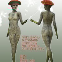 HD morph with a full texture set. What that means is you are two clicks away from creating this character in your own art. HD morphs pose at standard resolution for quick motion and no loss of time, but renders in HD giving you the most extreme, detailed morphs ever.
