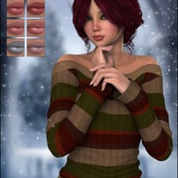 December is a sweet and cute wintry new character for Belle 6. She comes with Highly Detailed Skin and a Custom Sculpted Head & Body Morph built off the Belle 6 shape for Genesis 2 Female(s). December includes 8 eye colors, 8 makeups in soft, bold and rosy-nosed options and 8 lip options