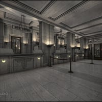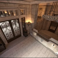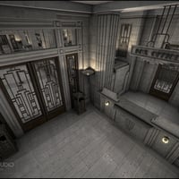 Deco Lobby Addon extends the Lobby into a Deco style theatre entrance. Front desks are added, with additional bench seats along with a completely new style of doors and windows. Given the modular nature of this product, it can be mixed and matched with the original set to prodive a wide variety of looks and uses.
