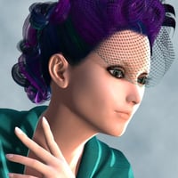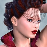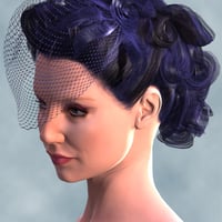 Deeta Hair is a modern take on the 1940s rockabilly hairstyle, complete with victory rolls and a birdcage veil with fascinator. It includes fits for DAZ 3D's Millennium Characters.
