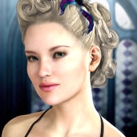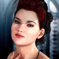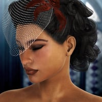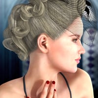 Deeta Hair 2 [ watch YouTube video ] - a modern take on the 1940's rockabilly hairstyle, complete with victory rolls and a birdcage veil with fascinator. It is fitted for Genesis and Genesis 2 Female(s) (.DUF and .CR2), and custom fits are included for the major DAZ 3D models - such as Victoria 6, Victoria 5, Aiko 5, etc,. which allow you to mix them together to make your own custom character (ex. Aiko4=0.3 plus Aiko5=0.3).