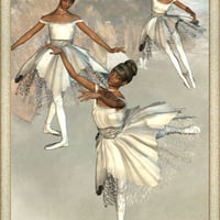 Now Steph Petite Can join in the dance. In her leotard with lacey dropped shoulders and long layered skirt, a cute little ribbon tied around her neck, a big colorful sash cinching her waist, a generous bow draping over the back of the skirt, and a gossimer set of satin slippers to finish off the outfit, she can pirouette around the room to her heart's content.