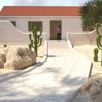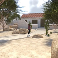 Enjoy this beautiful house located in the middle of a desert with mountains all around.