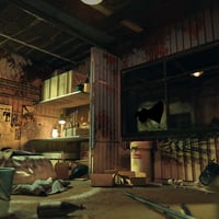 You will have a realistic wasteland-style interior scene. You will have a container room, bed, table, shelf, and all kinds of waste and debris.