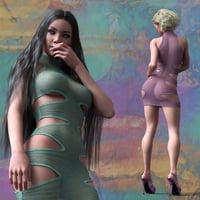 Introducing the Desiree Dress for the G8 and G8.1 Females. The Desiree Dress is a unique and sexy dress with a high neck and flirtatious cutouts on each side that highlight every character's feminine shape. With it's skintight fit, it traces every curve. Although the dress conforms very well without simulation in many cases, it is dForce enabled and it's settings will create a more snug fit to the body.