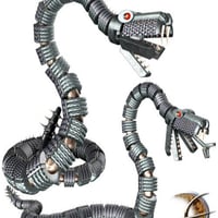 The Metal Snake is a standalone mechanical snake figure for Poser 4 and above. It comes with two conforming wings figures, and is prescaled for standard Poser 4 humanoid figures.