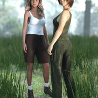 This Outfit consists of a Tank Top, Pants (Base and Undone versions), Hiking Boots, and Sock Tops for the Genesis 9 and Genesis 8 Female along with a selection of material, shader, and dForce presets. The Genesis 9 version is optimized to work with the Genesis 9 Base Feminine shape.