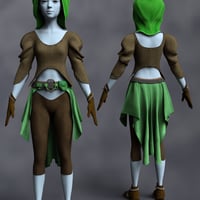 A complete ranger outfit, including pants, hood, skirt, shoes, gloves, belt and a blouse.