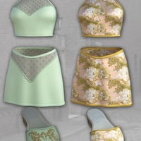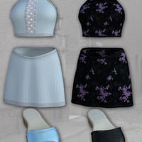 Beautiful everyday clothes for Genesis 8 Female that has a top, skirt and shoes