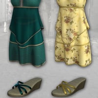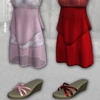 Beautiful everyday clothing for Genesis 8 Female that has a skirt, top and platform shoes