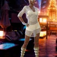 Outfit include Sheer Dress (dForce), Bra, Shorts, Boots, Sunglasses, Gloves (dForce) and Bandana (dForce).
