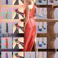 This Outfit contains an elegant dress with multi-colors variants, Earrings and Heels in 06, 04, and 06 Materials options respectively.