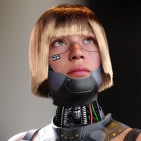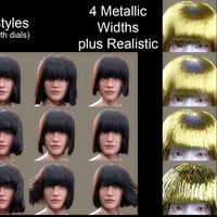 dForce Android Hair is a sleek and straight medium bob style suitable for trendy modern characters, various historical eras such as the twenties and even back to Egyptian styles, and of course for android characters using the included metallic shaders.