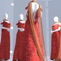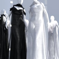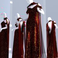 The set includes the gown itself, a long scarf and two options for the back pins - a chain and a cloth strip as well as 10 texture options, 3 of which are "color change" materials allowing you to tweak them to be any color you like with two clicks.