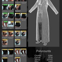 Choker, Corset, Jacket, Skirt, Stockings and Shoes.