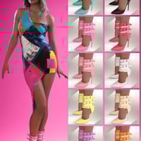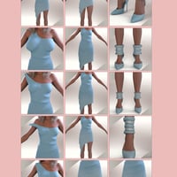 An elegant dress with a variety of color solutions, textures and morphs, stylish high-heeled shoes with a rich palette of options, as well as a set of harmonious backgrounds that perfectly match the shades of the outfit.