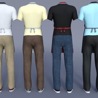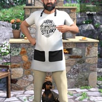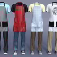 This texture pack for the classic BBQ outfit offers stylish and colorful add-ons for your Genesis 8 Male's Pants, T-shirt, Shoes, and Apron.
