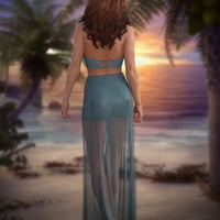 It includes a frilly bra top, a long flowy skirt with built-in bathing shorts, and 06 styles in Iray with separate print style options for the skirt shorts.