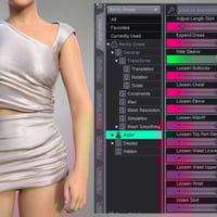 The dress also features a variety of adjustment morphs, including one that extends the skirt length for a more dramatic or modest silhouette.