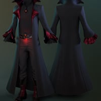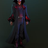 Under the blood moon's crimson glow an ancient vampire revels in newfound power - and with this outfit, he can reign supreme. Includes a shirt, belt, pants, boots, and a fully conforming coat with handles for extra adjustments, as well as dForce simulation settings.