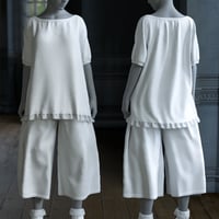 This outfit consists of a loose shirt and culottes, socks, and boots. You can enjoy the beautiful drape by dForce because of the loose silhouette, and 5 Materials sets, supported shapes and adjustments round out the package.