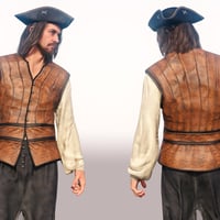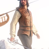 Get this Brave Corsair Outfit for Genesis 9 with a realistic design and finish. This outfit includes 5 pieces: a hat, shirt, vest, pants, and boots. Includes a sword to complement the outfit prepared to pose your scenes.