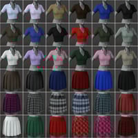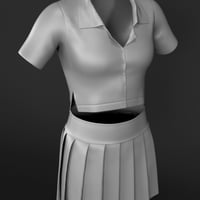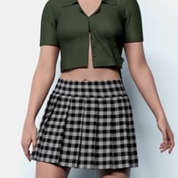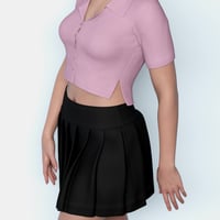 Fill your Genesis 9 wardrobe with this set of casual clothing including a buttoned crop shirt and a pleated skirt. All items are meant to be used with dForce simulation.