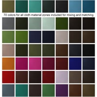 Included are six high-resolution texture options and 50 color options for the different material zones each.