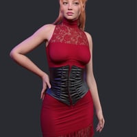 Candid slim dress combines the sleek, figure-hugging dress with a small corset.