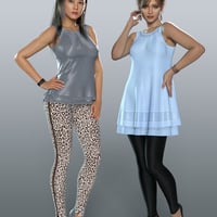 dForce Capsule Wardrobe 02 for Genesis 9 features a casual yet elegant look: a peplum top, leggings, and platform high-heels. The peplum top has several length and width options, so it can turn it from a short top into a minidress, the bottom layer can be switched off, and it also features a tuck morph that works with the jeans from Capsule Wardrobe 01.