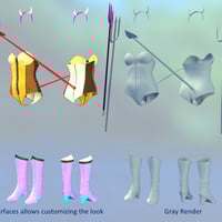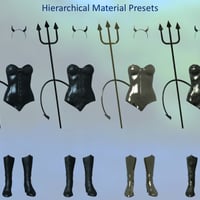 The outfit includes hierarchical material presets for changing the look of the outfit and additional material and shader presets for changing parts of the outfit or selected surfaces.