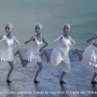 Fits for 46 Genesis 8 Female figures are included as well as the Daz full body and breast morphs. Additionally, there are 4 Wearable Presets that demonstrate using a combination of morphs and dForce simulation surfaces to create unique garment variations.