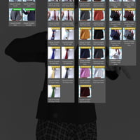 It includes 4 color options for shirts, 7 color options for ties, 11 color options for skirts, and 7 color options for sweaters.