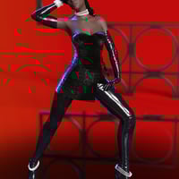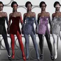 The dForce CB Raven Clothing Set for Genesis 8 and 8.1 Females is a 7-piece set for the modern disco diva. PBR textures provide high-quality renders of sequin, leather, and lace materials. dForce is combined with traditional full rigging for greater flexibility with poses.