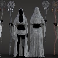 dForce CB Rowan Clothing Set is a 6-piece clothing set with both dForce and traditional rigging. It includes Top, Skirt, Briefs, Wraps and Staff with hand pose.