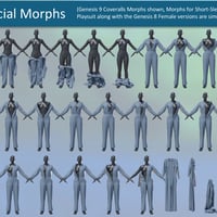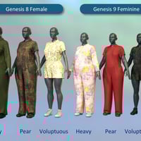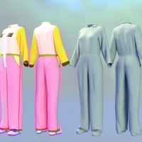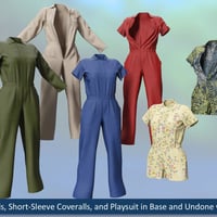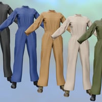 This set consists of dForce Coveralls, Short-Sleeve Coveralls, and Playsuit in Base and Undone versions, along with Boots for the Genesis 9 and Genesis 8 Female figure, and a selection of material, shader, and dForce presets. The Genesis 9 version is optimized to work with the Genesis 9 Base Feminine shape.
