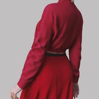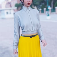 A crisp, fitted classic shirt in a soft, neutral shade pairs effortlessly with a flowing, breezy skirt that moves gracefully with every step.