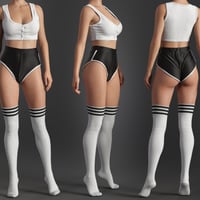 In dForce Cozy Day Outfit for Genesis 9, 8, and 8.1 Female, there are 2 Tight Tank Top Material Presets, 2 High Waist Shorts Material presets and 2 Socks Material Presets.