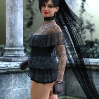 Includes extensive morphs for fit adjustment, Hide options for lace chest and sleeves, veil blowing in the wind presets.