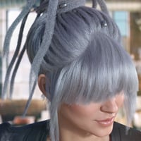 This hairstyle is a morphing dForce strands model of a dreadlock ponytail with baby bangs (fringe). Morph dial sliders help fit your figure poses beyond the 22 sample hair poses provided. The dForce hair is grown on a skull cap that is fitted for Genesis 3 & 8 Female(s) (.DUF) and auto-follows most character head shapes.