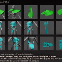 The Suit and Cape have some Special Morphs. Some of these may look best when the suit and Cape are simulated. Some allow the item to be shaped as if it is Off the figure and not being worn and is meant to be used not fitted to a figure.
