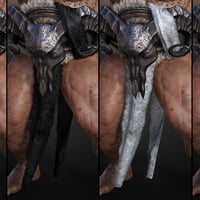 This set of a dForce massive belt/loincloth and undergear comes complete with highly realistic texture maps, individual alternate material presets for the fur, ram skull, cloth and undergear. Also, 5 opacity maps for different cloth edges and metallic overlays for a royal finish.