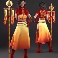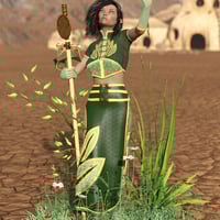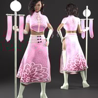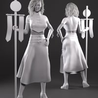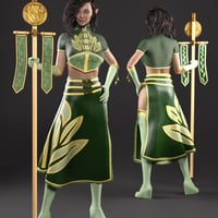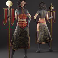 In addition to a custom rigged staff and cords, the skirt has a fully poseable rig and is dForce enabled for more realistic fabric handling.