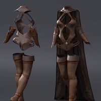 This product contains strappy thigh high heeled boots, a strappy cutaway bodysuit, half gloves, removable dForce cape, and crown.