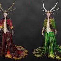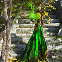 Comprised of several protective parts for torso and limbs, plus fitting gem elements, it is completed by two dForce compliant skirt types and an upper body drape. The matching horn cap with its fitting horns lends the final finishing touch to this set.