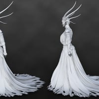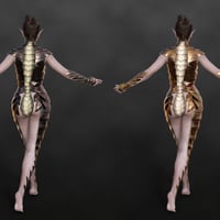 This new outfit set presents a unique style combination or armor and soft draping elements.