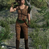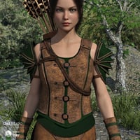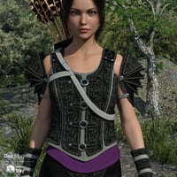 Top, pants, shoulder guards, boots, gloves, and both left and right arrow quiver/holsters are conforming. The skirt is dForce, but using the Skirt bone in the Scene tab, it can be used as conforming for easy, simple poses.