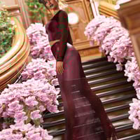 The elegant top features a deep V-neckline and long sleeves with customizable opacity settings, allowing for a tailored look.