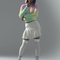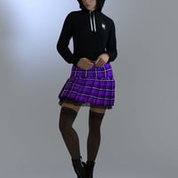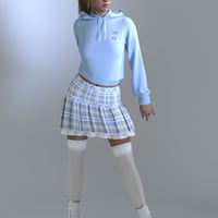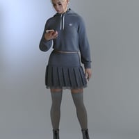 Emma Casual Wear is a comfortable style for today's modern woman or girl. This pack comes with a hoodie, pleated skirt, over-the-ankle boots, panty, and stockings. The panty and stockings are geoshells so they will move naturally with your Genesis 9 character. Also included is a Morphing Cap to control hair shape when the hood is up. Load your hair to the morphing cap and apply the included morphs, along with the hoodie morphs, to fit the hair to the hood. There are 7 textures for the hoodie and boots, 8 textures for the skirt, 6 textures for the panty, and 5 textures for the stockings.